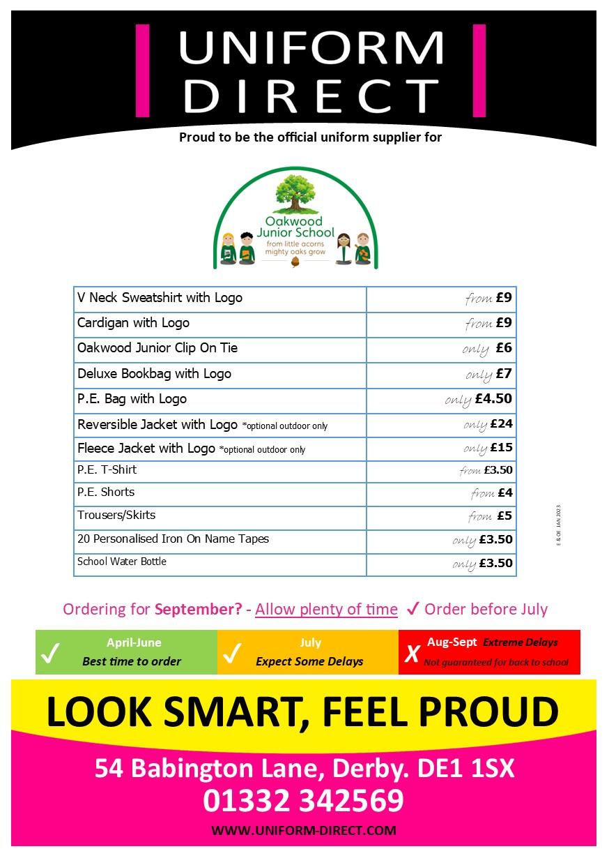 Both Oakwood Infants and ourselves have adopted the same uniform which consists of: