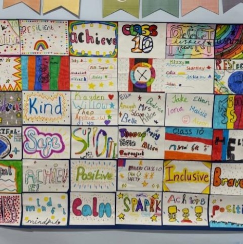 In July, everyone visited their new classes to meet their new teacher for the day. During this transition day, classes were tasked with creating their class flag. The flag was to be made up of positive and motivational words that would inspire children to be the best they can be. Everyone designed their own piece, colouring and decorating it however they wished. Once all the pieces were finished, they were joined together to create the flag. This was then displayed in the classroom in September so the children would be inspired from the very first day of term. The activity aimed to create a sense of belonging in each classroom and encourage team work, therefore promoting positive mental health and wellbeing. Take a look below at our fantastic flags!